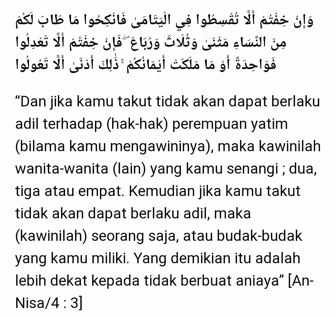 | Baca: Miw Ar Twitter Ayat Poligami Yg Paling Jelas Dlm Alquran Cuma Satu Surat An Nisa 3 Tapi Ketika Dibilang Maka Nikahilah Wanita2 Lain Yg Kamu Senangi 2 3 Atau 4 Itu |